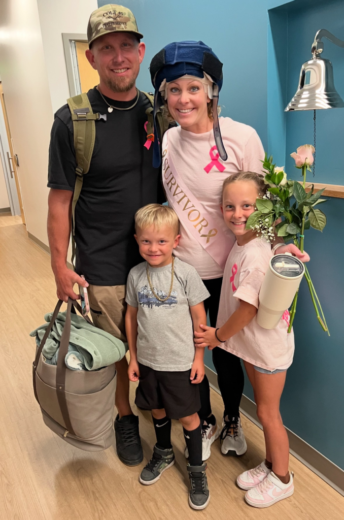 Kasey completed her 18-week chemotherapy journey! She used cold capping throughout, with Colt diligently changing them every 25 minutes, and she proudly kept her curls. Kasey powered through both chemo and teaching without missing a day, looking so radiant that many students were unaware of her battle.Today was an emotional milestone—she rang the bell, marking the end of this chapter! Special thanks to Erin for lunch and Dana for dinner, these have been such a big help on her chemo days! She has a doctor’s appointment on Wednesday, October 1st, to finalize surgery details. Post-surgery, Kasey will resume immunotherapy, likely for a year from diagnosis. We’ll share updates on her surgery soon. Please keep Kasey in your thoughts, as she’s feeling overwhelmed about this next step.